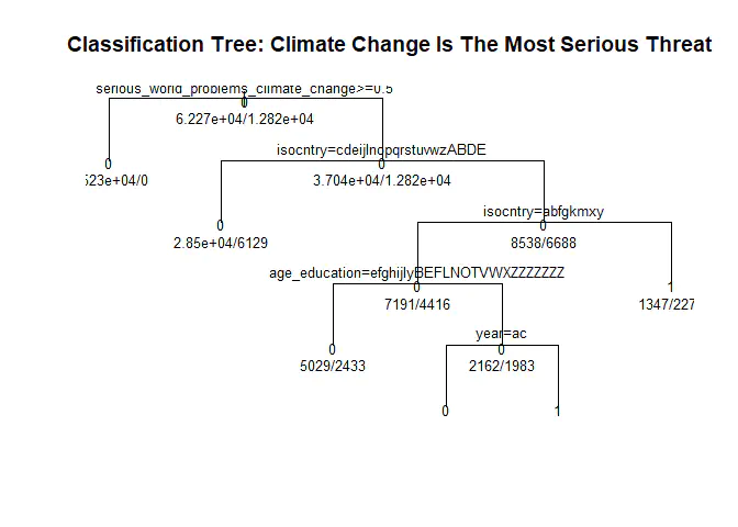 main="Classification Tree: Climate Change Is The Most Serious Threat")